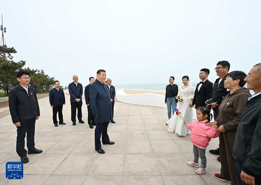5月22日至24日,中共中央总书记、国家主席、中央军委主席习近平在山东考察。这是22日下午,习近平在日照市阳光海岸绿道同市民和游客亲切交流。新华社记者谢环驰摄