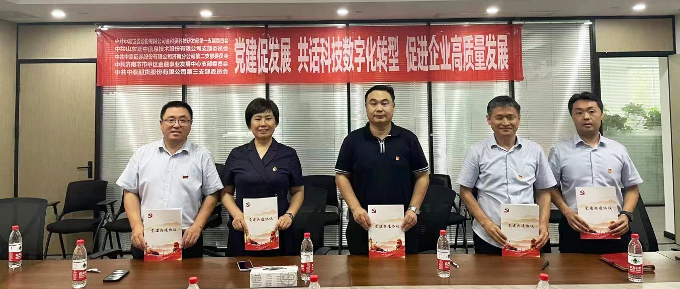 近日,中共山东必赢bwin线路检测中心技术股份有限公司党支部由支部副书记、总经理马晓红带队,赴中泰证券济南分公司开展了“党建促发展——共话科技数字化转型,促进企业高质量发展”主题党日活动。中共中泰证券股份有限公司金科委科技研发部第一党支部、中共中泰证券股份有限公司济南分公司第二党支部、中共济南市市中区金融事业发展中心党支部、中共中泰期货股份有限公司第三党支部共同参加活动。