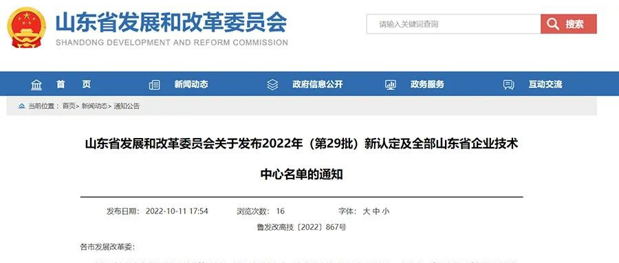 必赢bwin线路检测中心获批2022年山东省企业技术中心