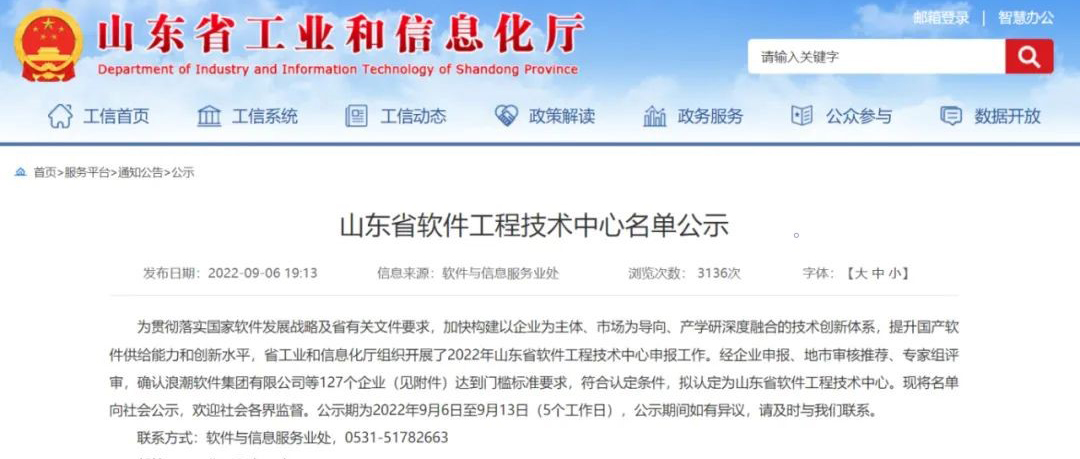 近日,山东省工业和信息化厅公布“山东省软件工程技术中心”认定名单,全省127家企业达到门槛标准要求、符合认定条件,山东必赢bwin线路检测中心技术股份有限公司榜上有名!本次被认定为山东省软件工程技术中心,是政府主管部门对必赢bwin线路检测中心科研创新实力的高度认可。